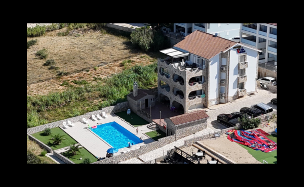 Dvosoban apartman sa bazenom i u prvom redu uz more.